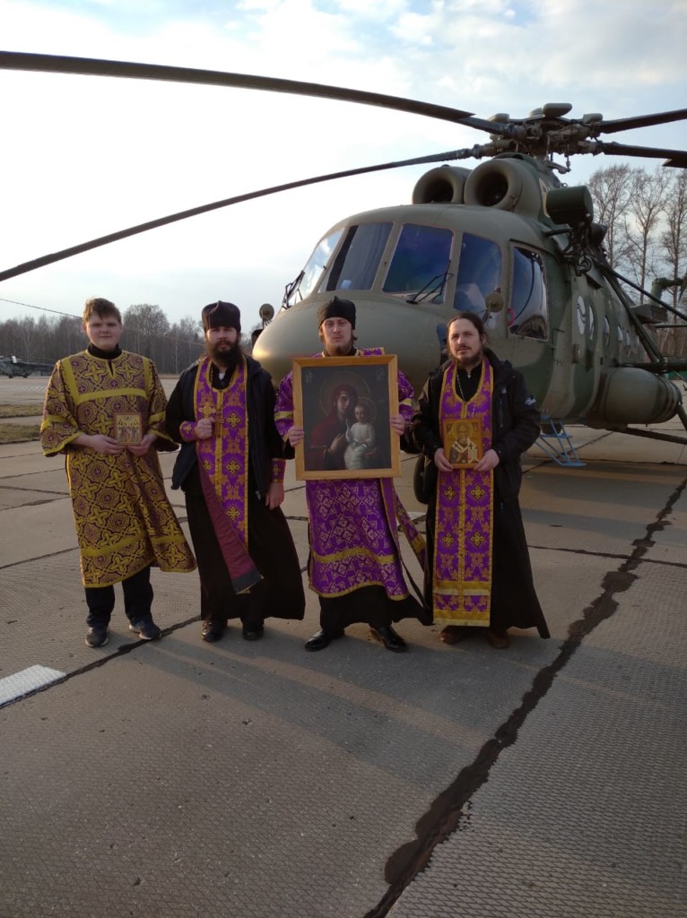 3 апреля после окончания молебна был совершен облет Клинского района со святынями на борту вертолета, где священнослужители усердно молились о защите жителей от надвигающейся угрозы.